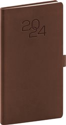 Kapesní diář Vivella Classic 2024 v klasické hnědé barvě s dominantní ražbou letopočtu. Povrch diáře je imitací kůže a lze do něj snadno razit i firemní logo.
