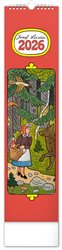 Nástěnný kalendář s ilustracemi Josefa Lady a jeho pohádkovými motivy je vyhotoven v oblíbeném úzkém formátu, který osvěží každý interiér. V kalendáři je rovnocenně zahrnuta čeština a slovenština, ilustrace doplňují česká a slovenská jména, svátky, památné dny a měsíční fáze. Každý den má prostor pro poznámky, víkendové dny jsou barevně odlišené od pracovních.